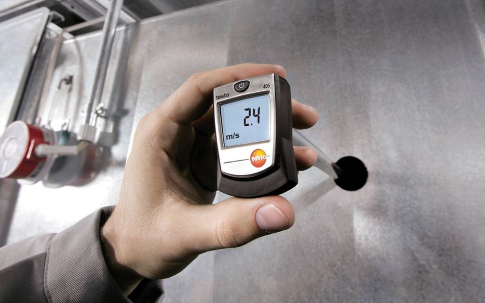 testo 405 迷你熱線風(fēng)速儀測(cè)量風(fēng)速、風(fēng)量和空氣溫度。適用于通風(fēng)管內(nèi)快速實(shí)施測(cè)量以及室內(nèi)風(fēng)速,比如,通風(fēng)窗的風(fēng)速。
